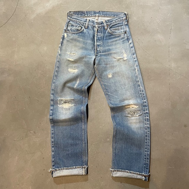 70s Levi’s 501 “66前期” Denim Pants . Size : W28×L30 ウエスト:72cm 股 下:75cm 腿 幅:24cm 裾 幅:19.5cm 股 上 : 27cm ※多少の誤差はご了承ください。 . 75年製 リーバイス501 66前期モデル。 ボタン裏 6 赤耳 ポケモン裏シングル 初入荷の66前期。 ヒゲ、脇割りしっかり出てます。 ダメージ箇所も叩きリペアが施され雰囲気ある一本。 サイズ合う方どうぞ。 . condition : ダメージ、リペア多数あります。 ——ご購入前に以下ご一読お願い致します。—— ※取扱商品は基本的には中古品の為、写真に写しきれない細かな汚れや擦れ、アタリ等は全て記載しきれない場合がございます。また撮影環境により、実際の色味に若干の誤差が生じる場合がございます。 ※base掲載商品は店頭での販売も行っています。 そのため同時に注文がなされた場合には、全て店頭販売を優先させて頂きますので、予めご了承ください。 ※購入確定後のお客様都合によるキャンセルはお断り致します。