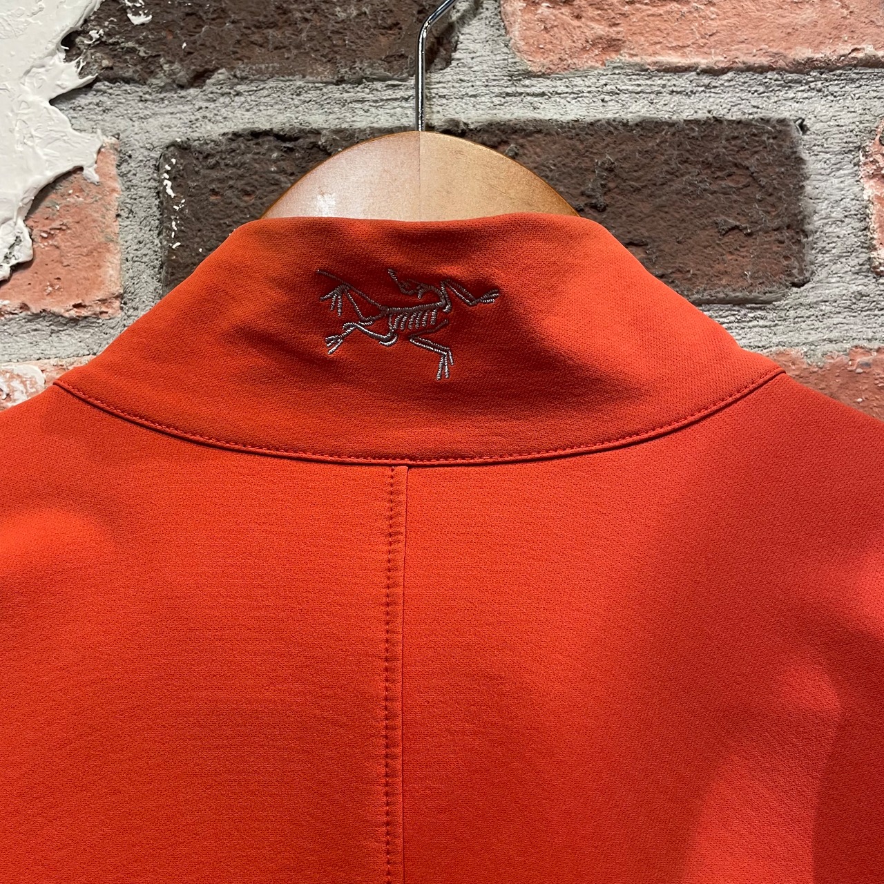 ストレッチ性の高いソフトシェルに胸、首裏の始祖鳥刺繍ロゴ。