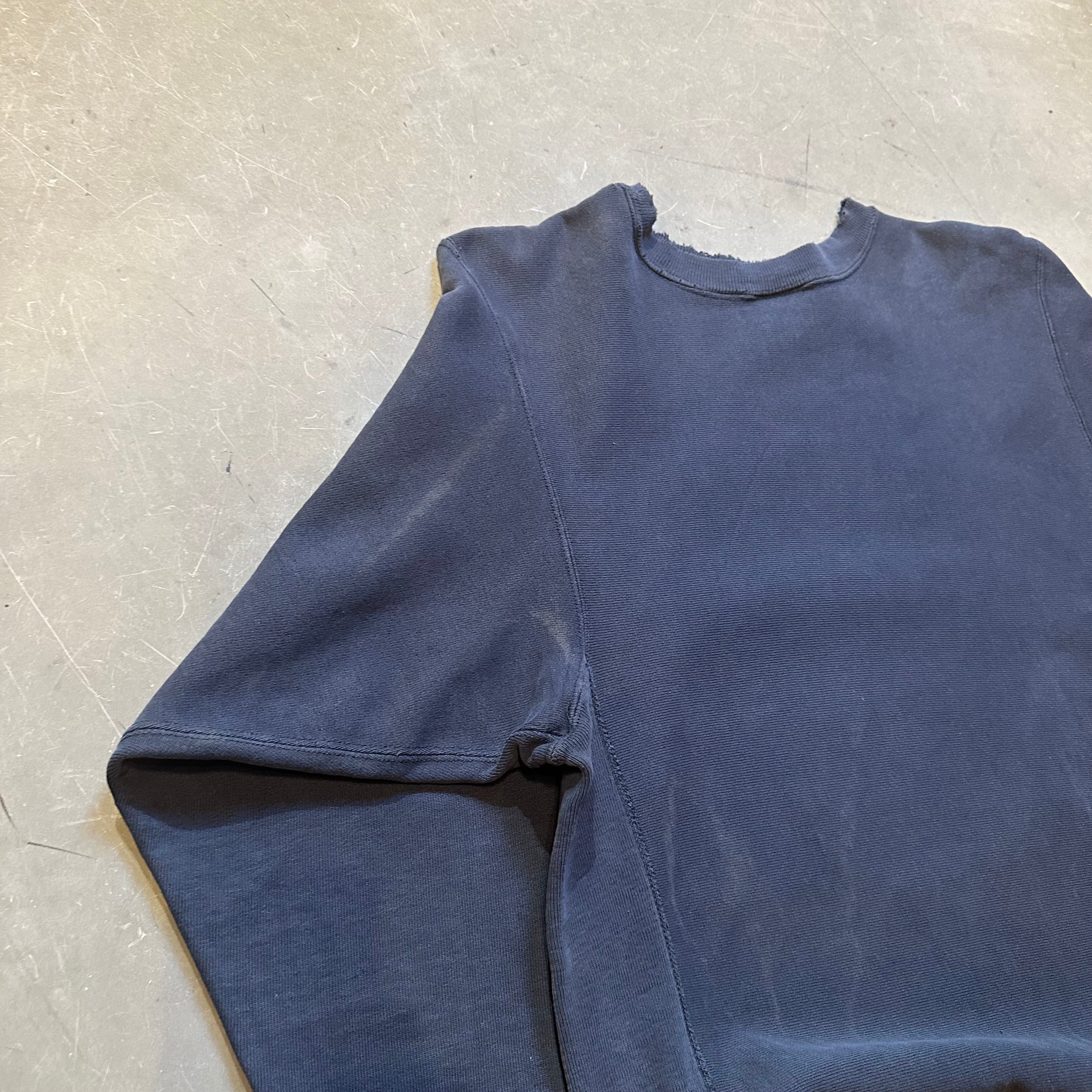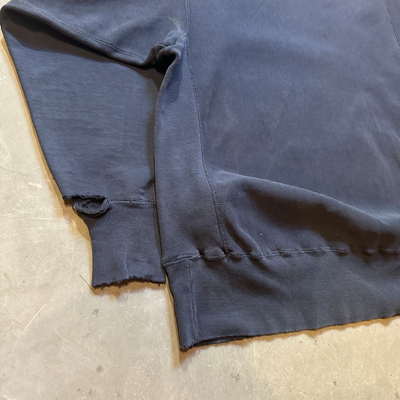 ボディは全体的にフェードがかかった一枚で、襟、裾、袖にダメージが入ります。このダメージは加点です。"襤褸の美学"抜群の雰囲気です。唯一無二な個体です。