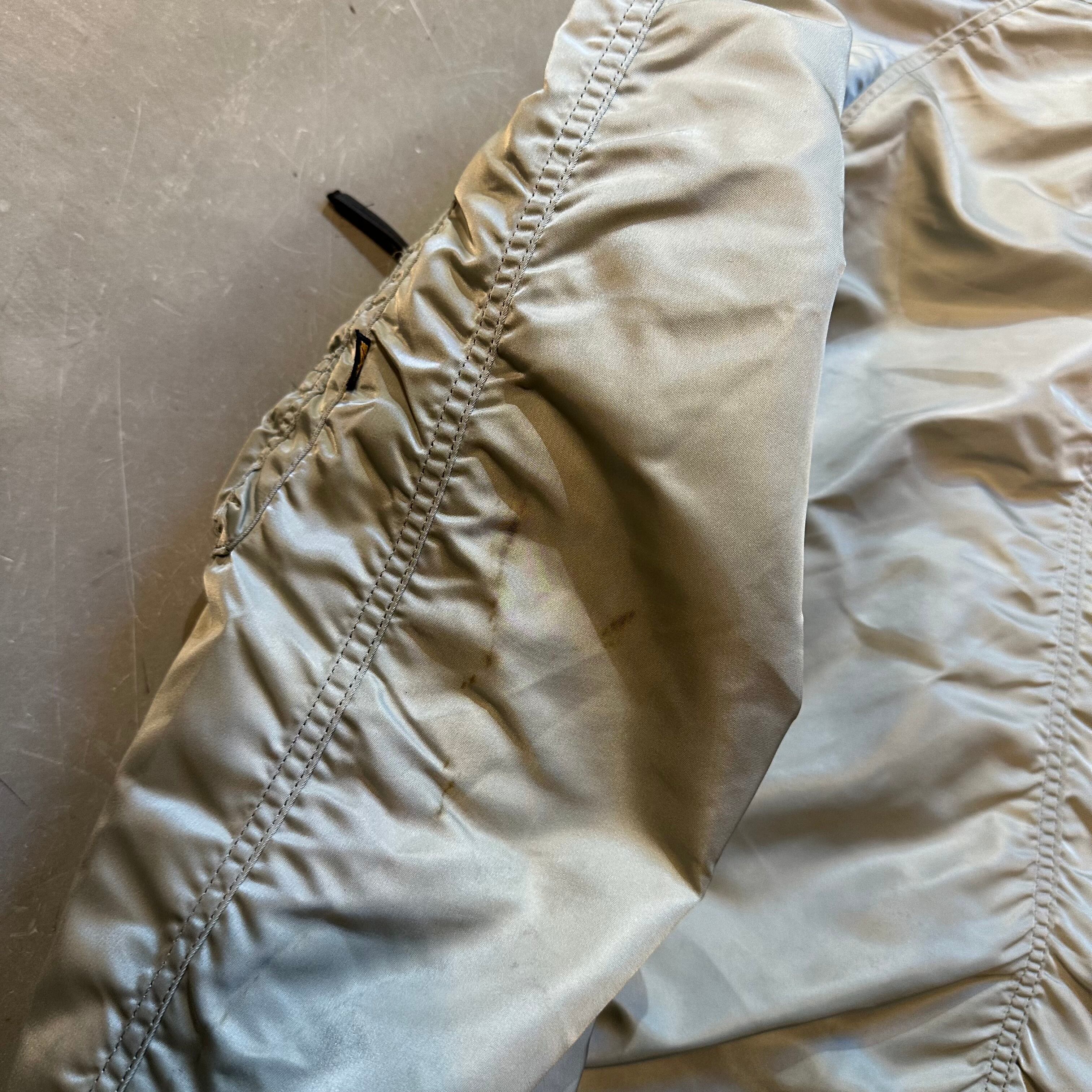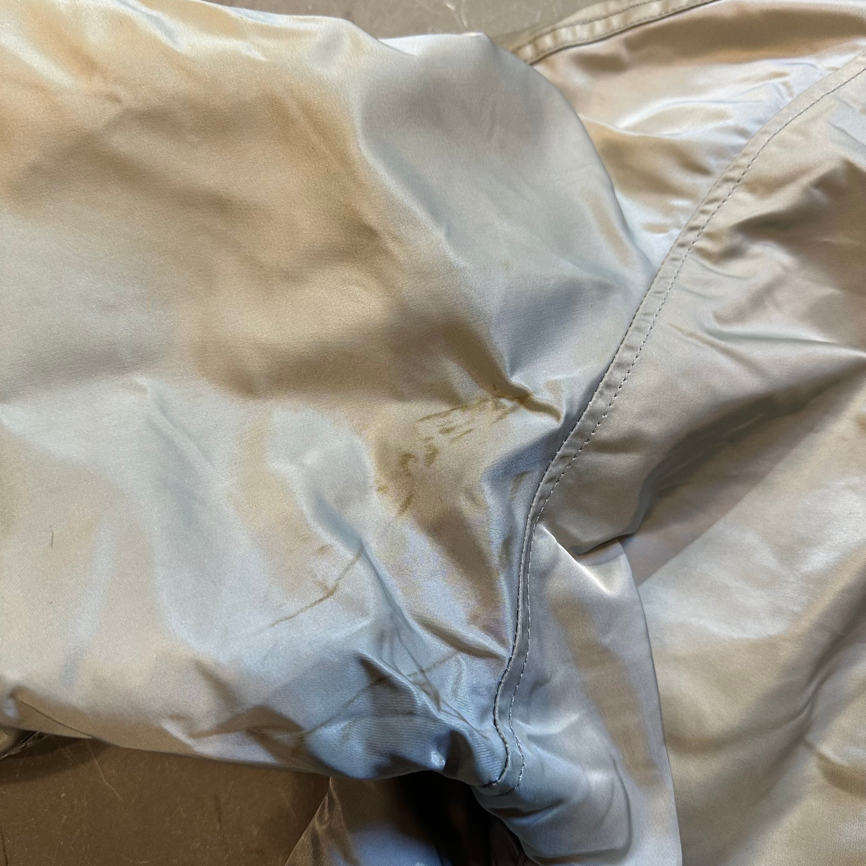 左袖裏二箇所シミあり。写真にてご確認ください。使用感薄汚れあり。