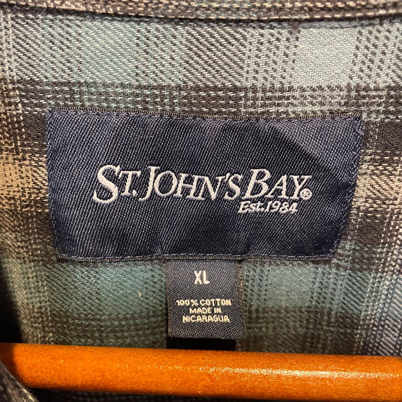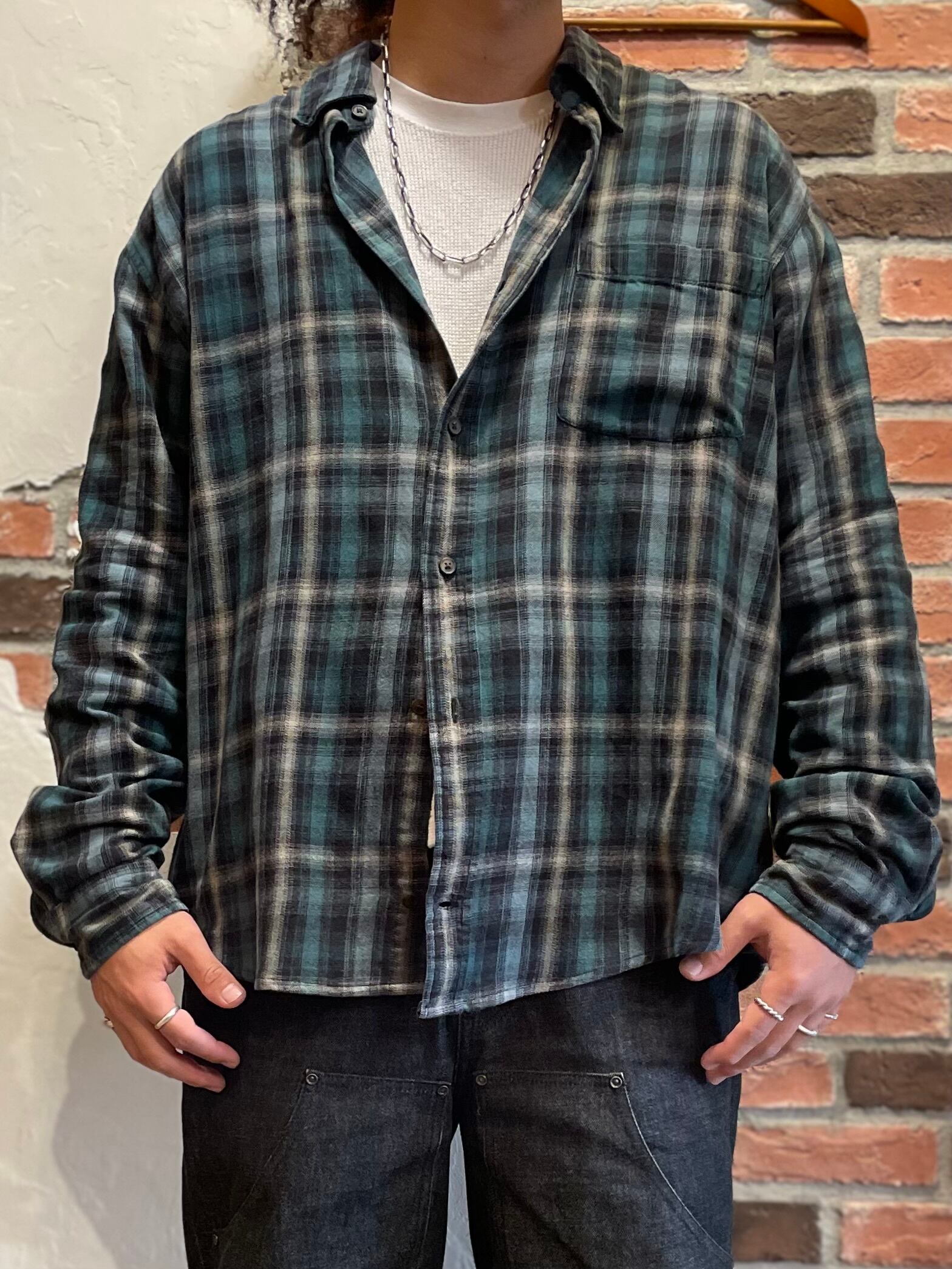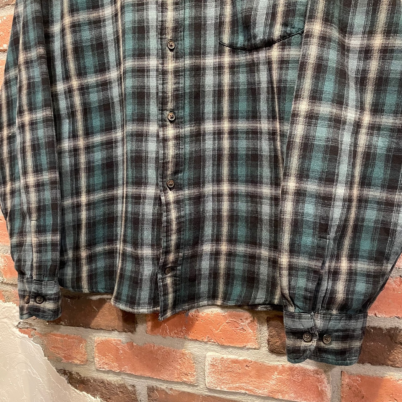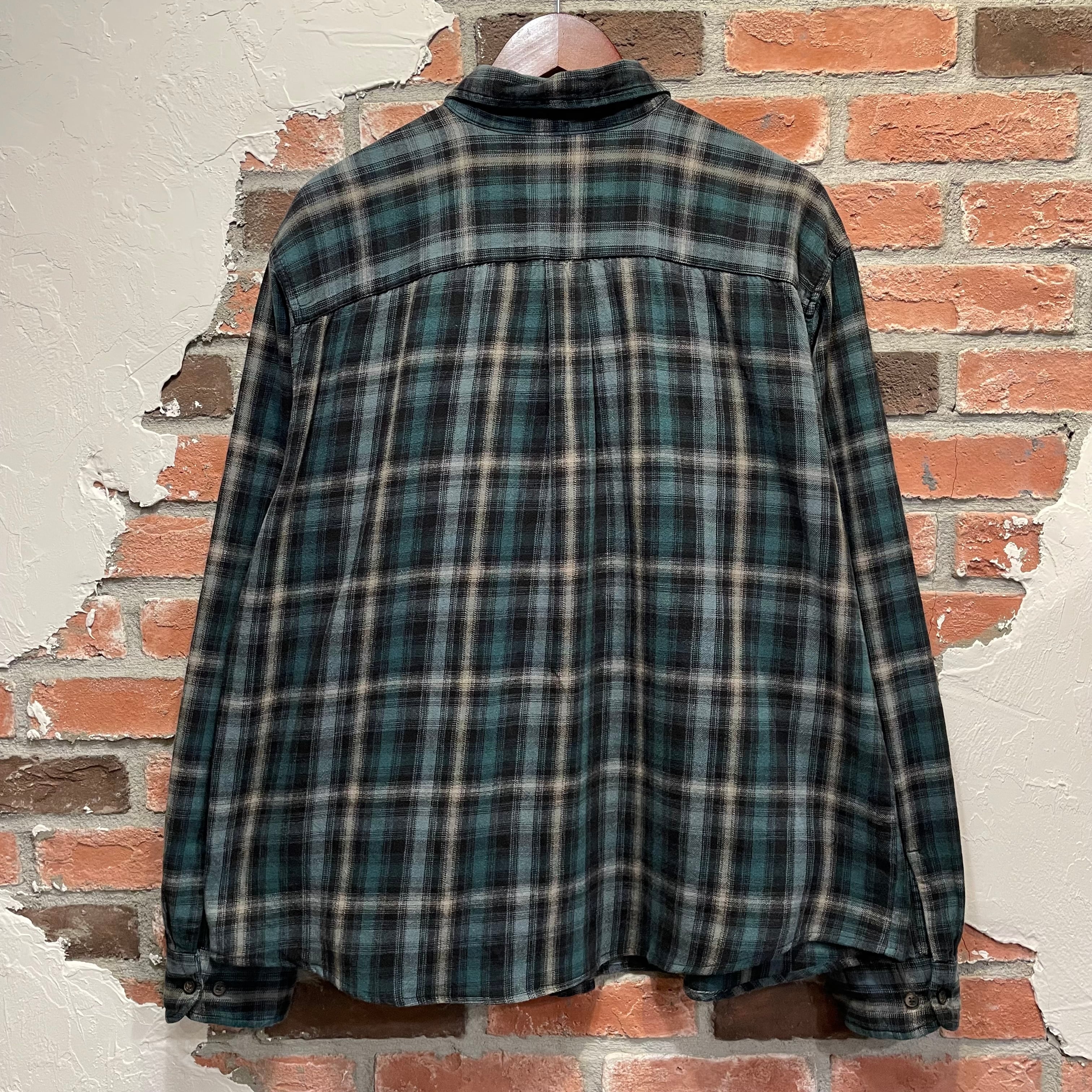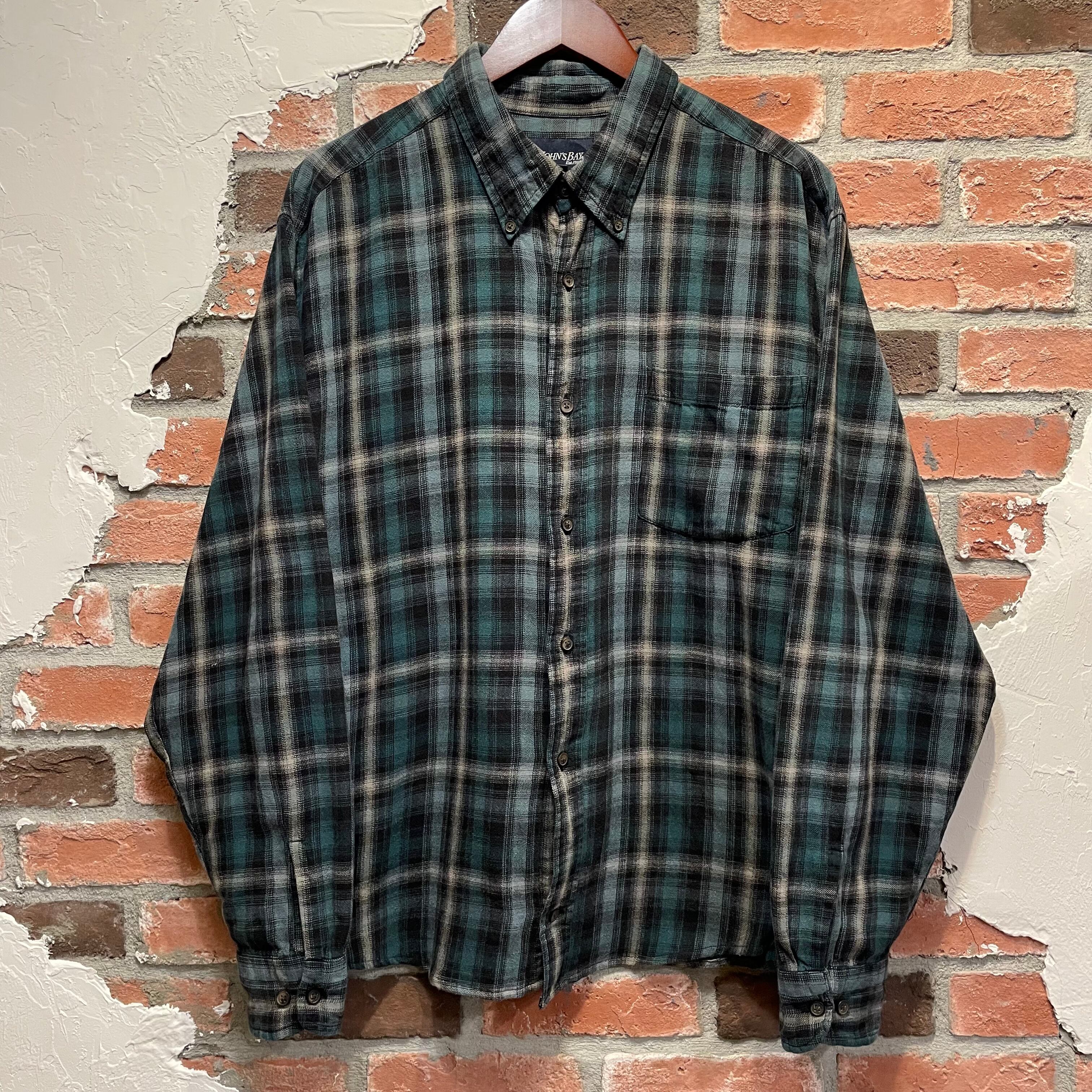 St.John’s bay Ombre Light Flannel Shirt 緑×白×黒 XL