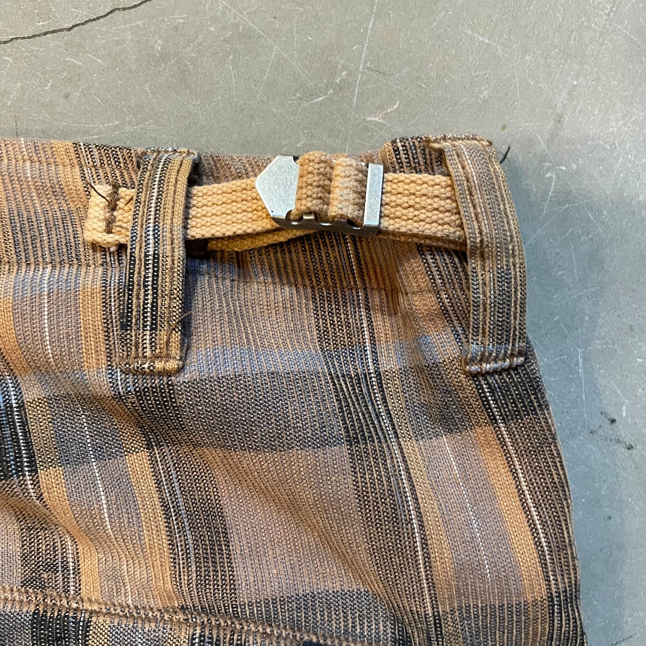 背面ポケットのボタンが一つ欠けてます。