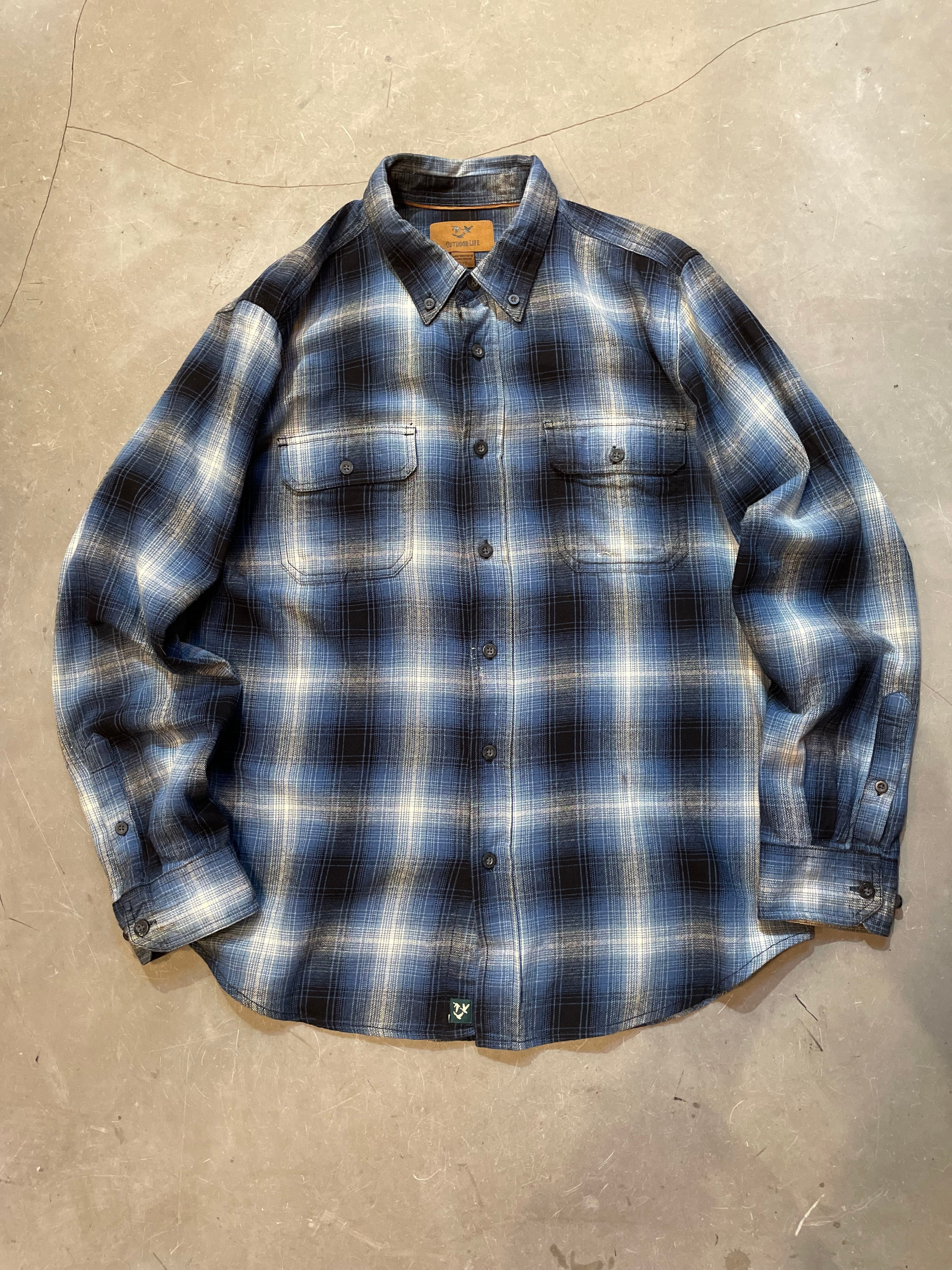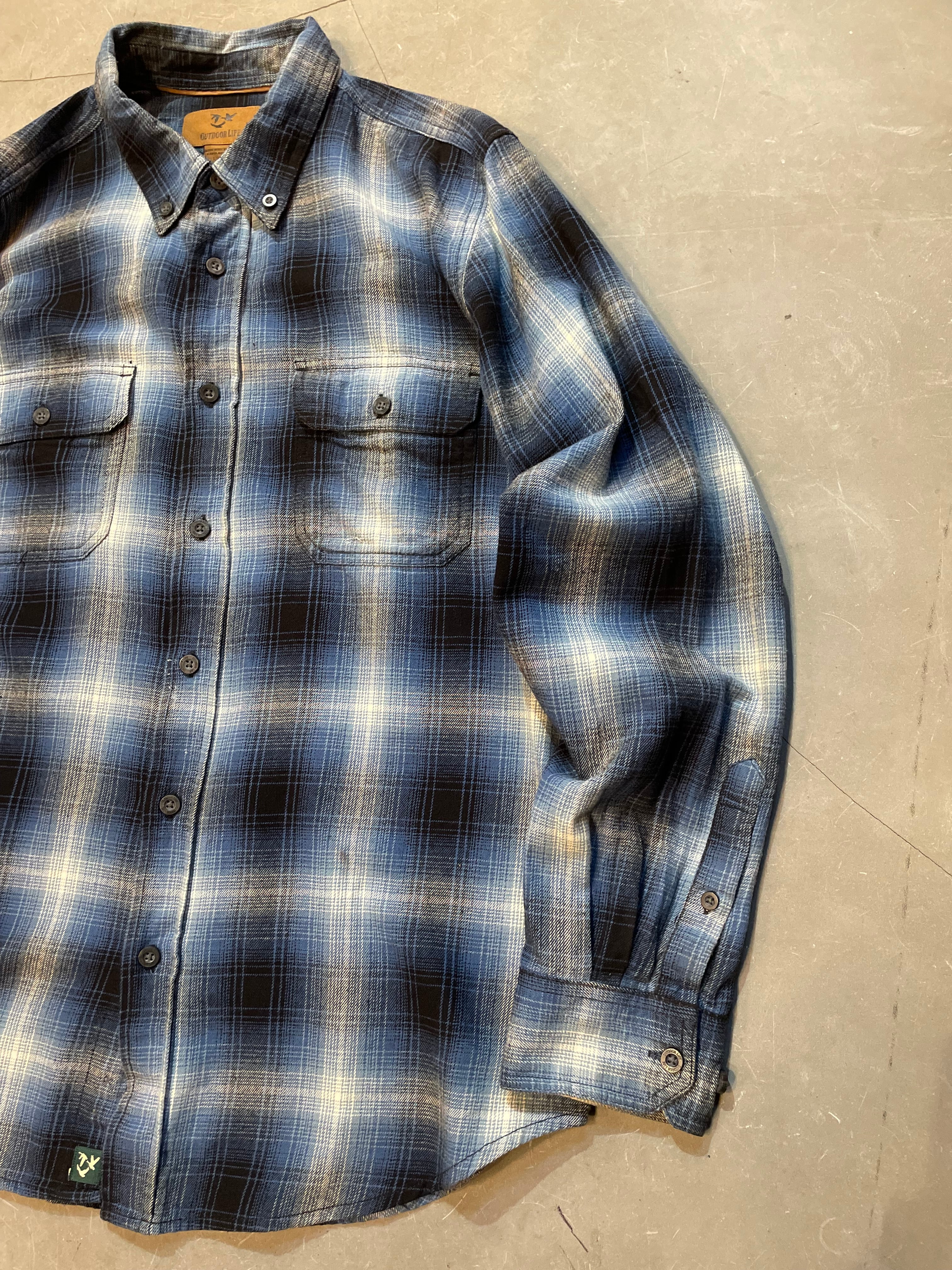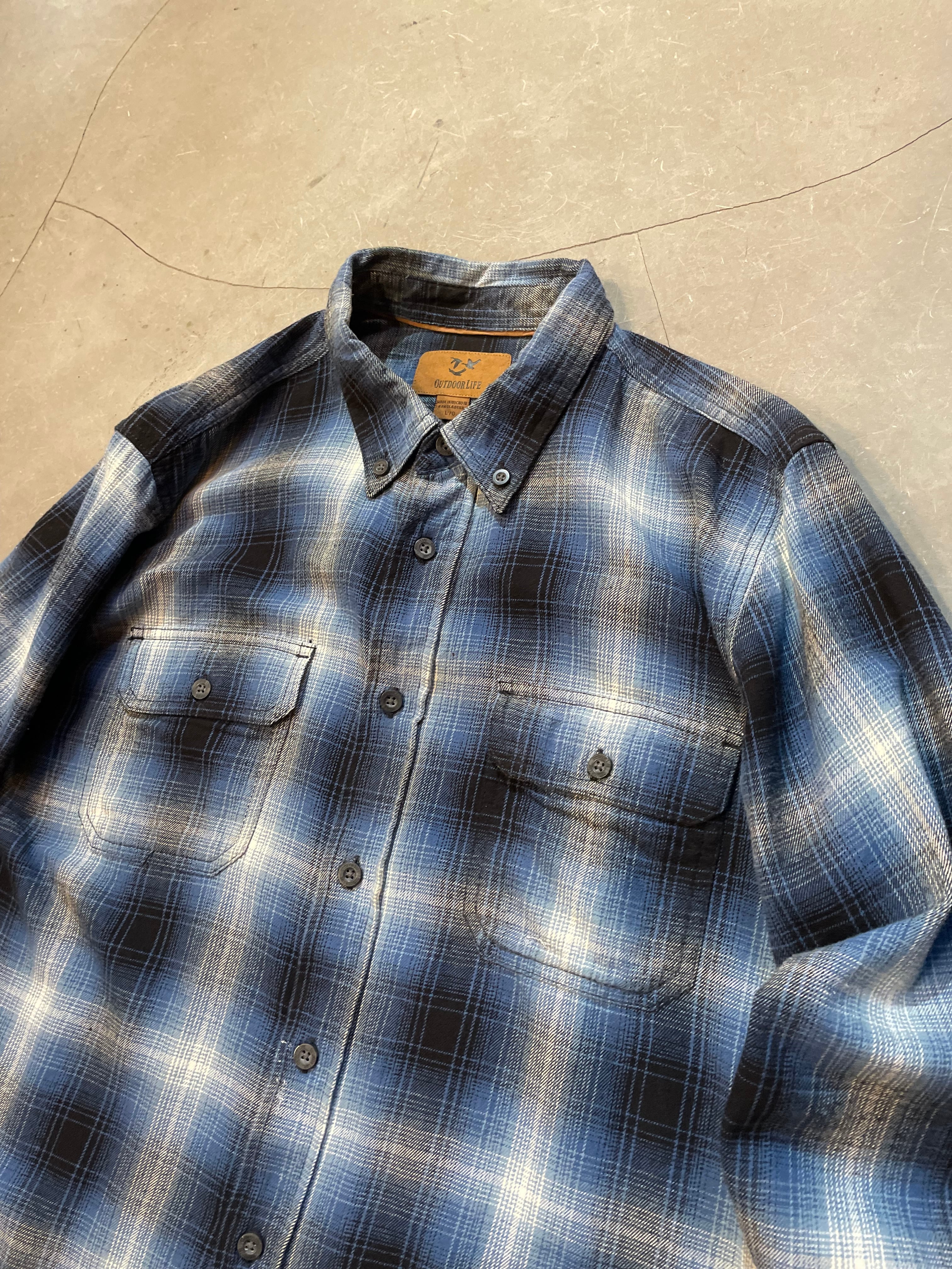 OUTDOOR LIFE Ombre Check Light Flannel Shirt 青白黒 L