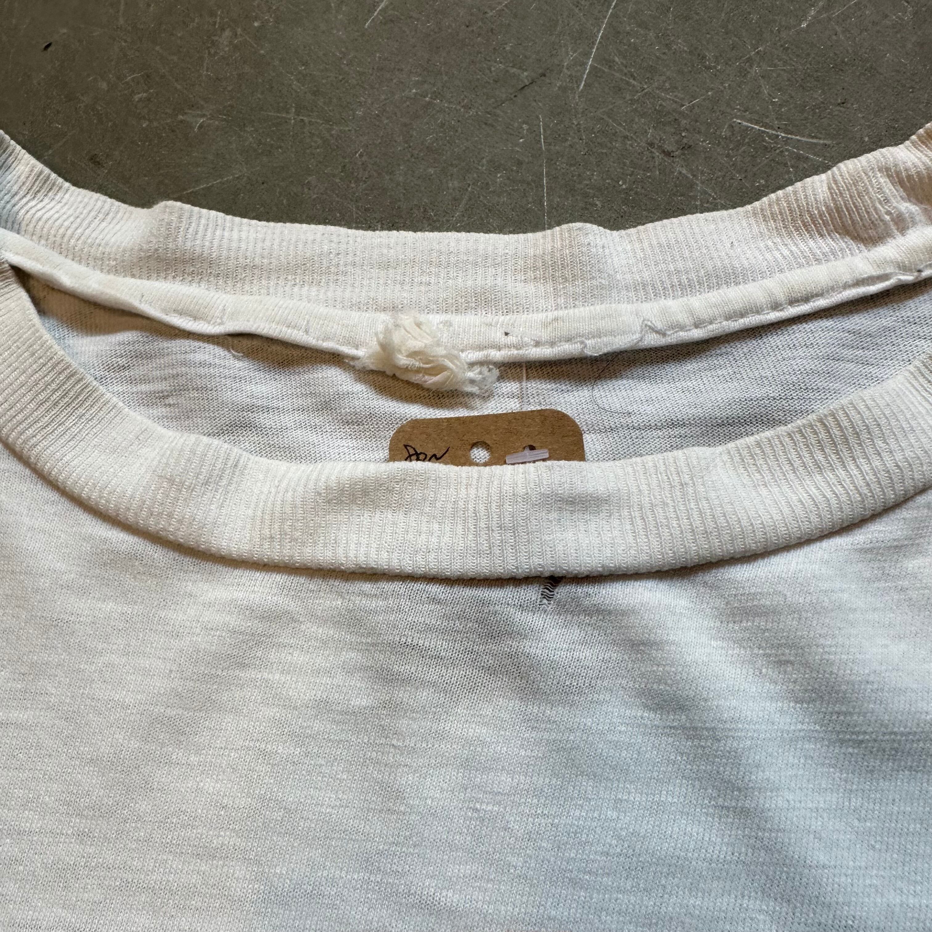 使用感あり、裾ステッチ取れあり。襟元小穴あ。。シミあり。